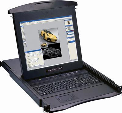 1U 19" Rack Monitor with Integrated CAT5 KVM Switch Touchpad, 16 Ports