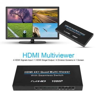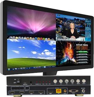 Quad Screen Splitter, also referred to as Quad Screen Multiviewer, enables you to simultaneously display Video signals from four HDMI or analog VGA 15 Pin HD or digital DVI-D single link computers or Video sources on one single screen. The computers can be controlled with single Keyboard and mouse or a single touch screen. Rackmount PIP (Picture in Picture) Quad Screen Splitter is the combination for a Quad Splitter and KVM switch in one device. This Quad Screen KVM Switch saves space and money. These units can be cascaded together to manage large number of computers. It eliminates the need to use several Keyboards, mice, and monitors to monitor data and saves precious rack space. Quad Screen Splitter unit supports simple plug and play functionality. This PIP KVM Switch system is OS independent and is extremely reliable. It is a perfect product for Highly mission critical applications. The multiview KVM Switch can be controlled with push buttons on the front, external configuration program on a remote PC, configurable hot key commands, serial port using DCP XML protocols, mouse click ( hot mouse), TCP/IP ( IP Extender needed), and touch screen. Hotmouse is a special option used to control Quad Screen Splitter. The Hotmouse function is activated by shaking the device horizontally. This enables users to access connected computers. The PIP Quad Splitter Quad Switch is also used in environments where space is limited (no room for a keyboard), using hotmouse feature. This Quad Screen Multiviewer Splitter offers users with multiple display mode options. In Quad Mode the Quad Screen Video Splitter splits the Video screen or LCD into four segments of equal size. In this mode each of four video sources is displayed on the entire screen. In PIP Quad Splitter mode the selected video source is displayed on the screen and the other three sources are displayed on the right side of the full screen as thumbnails. This unit offers the capability to customize the thumbnails (Position, size, and video source). One of the newest features of the Quad Screen Splitter is that in triple tile mode, the built in Video Processor automatically resizes the selected or active channel. All the channels are displayed at the same time with no overlap. In dual mode you can select any two video sources to be displayed simultaneously on the monitor. This feature enables users to monitor and capture data written in small text. In full screen mode any one of the four video sources can be displayed on the monitor or LCD. This Quad Screen Multiviewer Splitter unit has FCC, CE, and RoHS agency approvals. It is most commonly used for data monitoring, surveillance, commercial, information technology, military, and government applications. Please contact us for a complete system design for all your Quad Screen Splitter, HDMI Splitter needs. Quad Screen Multiviewer Splitter Products |
