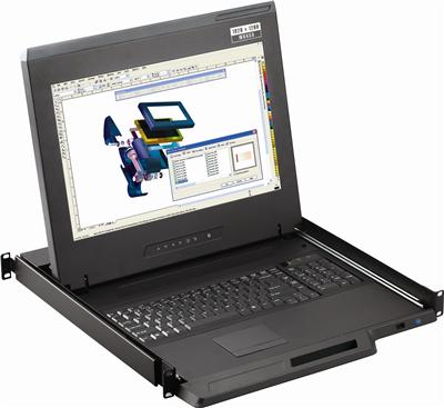1U 19" Rackmount Keyboard Monitor (RKD-KVM-19b) is a combination of Keyboard, Video and touchpad or trackball mouse (KVM) in 1U Rack drawer. This KVM Drawer unit comes with a combo interface cable which supports both USB and PS2 Keyboard interface. It comes with a 104 Key notepad Keyboard with full numerical pad.
